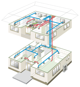 その空気の温度を調節して各部屋、共用部分にダクトで送り、各部屋ごとの温度差をなくして、家中同じような温度で生活することができます。